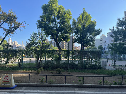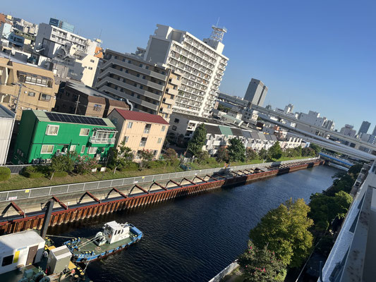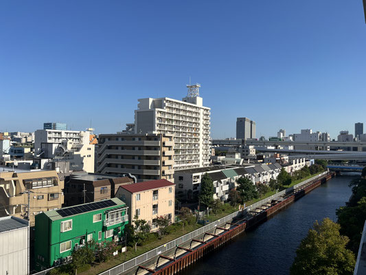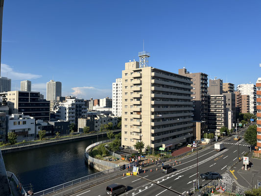 見えますかね。葛西橋通りの先。ちょうど写真中央、建物の間に見える、こんもりとした緑。木場公園ですね。わーい。ザリガニ釣りたーい