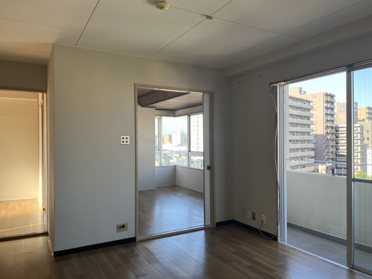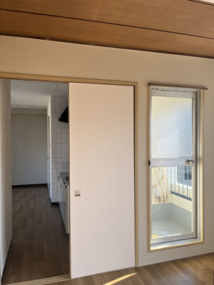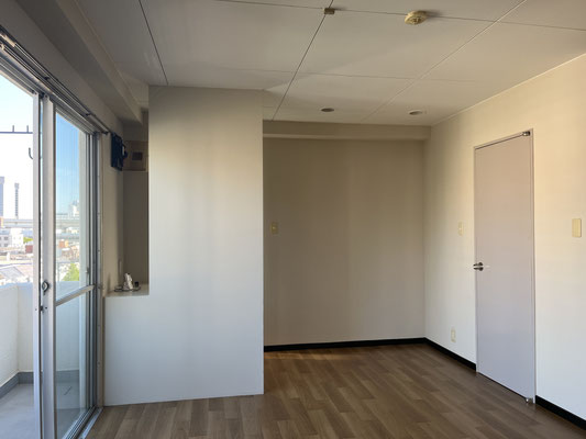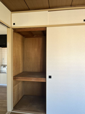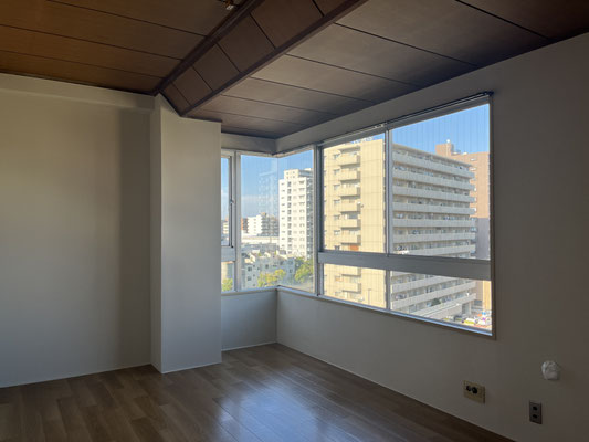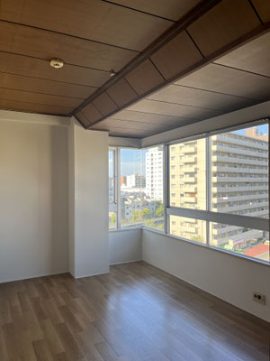 あれ?どうしたの?和室...じゃない?洋室へとconvertされ?やだ、びっくり。ところで、これもこの建物恒例ですが、4.5帖の洋室にはエアコン設置ができません。
