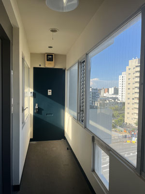 7階の非常階段の扉のくだりは、今回は割愛して良いですよね。え?暑いからじゃないですよ。スカイトゥリがちょろっと見えるとか見えないとか。良いじゃないですか、内見の時にでも見てみましょう。私ですか?私は廊下で待ってますので。あっつ