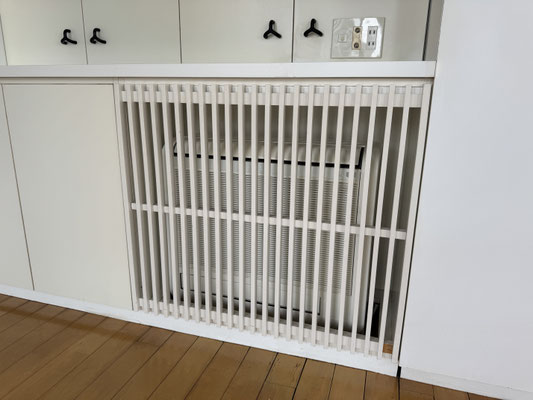 エアコンは壁の中へすっぽり。お元気ですかエアコンさん、頼りにしていますよ