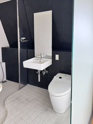 奥はお風呂とお手洗い。これまた先進的(言っておけばいい)。もちろん追い焚き機能ついてましたよ。いっぱいあったまろう。好みのシャワーカーテンおつけくださいね。
