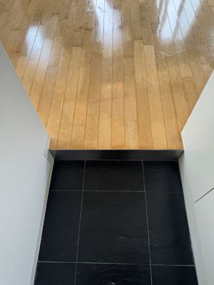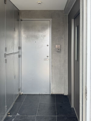 左側は階段でした、階段までオートロックで。(ふふ、鍵を忘れて階段に出ないでね)