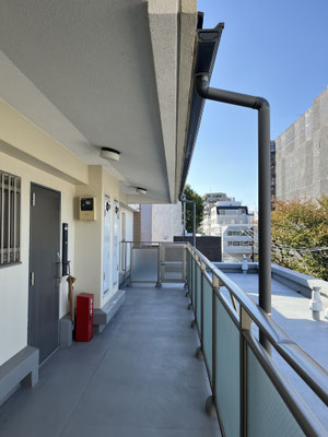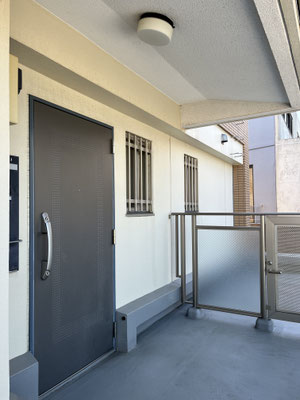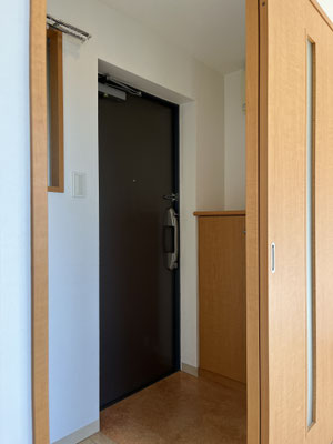 駅前の通りを脇に入って、ほどなく募集の建物。オートロックのエントランスを抜けて、エレベーターで4階に。4階、つまり最上階の角部屋が募集のお部屋です。