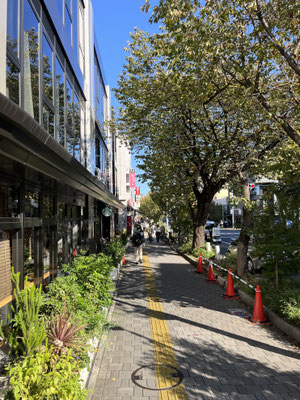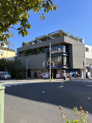 これだけ暖かいと、来年の桜並木の調子が少し心配になる、2023年立冬。桜新町ですね。サザエさんの銅像立つ、駅前の通りですが。桜新町って、平日日中の時間帯は結構な人通りなんですね。それはそうと。カルディが入る建物。最上階の緑が気になりますね。