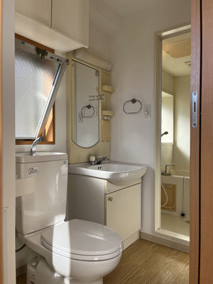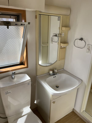 それで、洗面スペースなのですが。ワチャついてはいない。いないものの、必要なものをキューっと1箇所に納めた感はありますね。でも、小綺麗で嫌いではありません。洗面が少し古さを感じますが、それ以外は概ねFeelin' Good.