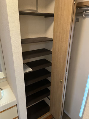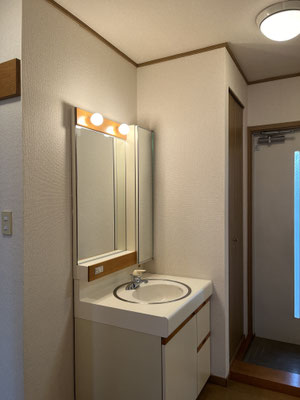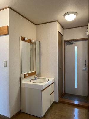 (玄関脇のシューズボックス、などと思ったら。その脇に、洗面台)