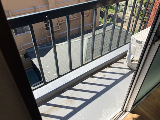 それで、先ほどの公園がチラリと見えるんですね。先ほどのkidsは、今はもう木陰で水筒の水でも飲んで。水分補給、大事。で、洗濯機置き場はバルコニーですよ、ということで。へえ。風と緑のそよめきでも感じながら、洗濯が終わるのを待ちましょうか。ビールでも飲みながら