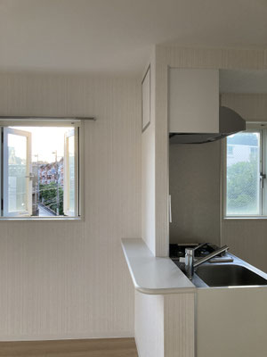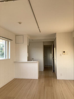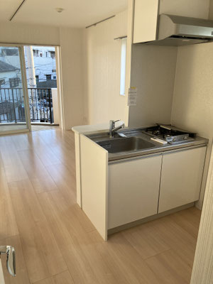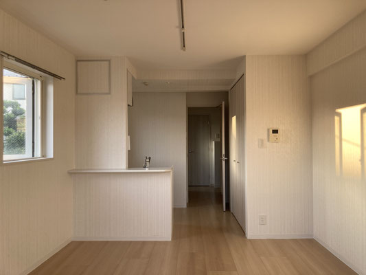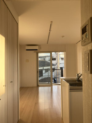 キッチンと居室が一体となったワンルーム仕様に西日が差し込むから、明るいね?良いじゃないですか。