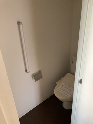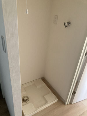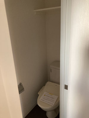 おトイレ、新設ということで。洗濯機置き場の上部にはロールスクリーンがございますので