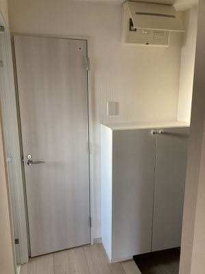収納はどうなんですかね。現地でご確認頂きたいところです。ところで、室内と玄関側はドアで仕切ることができます