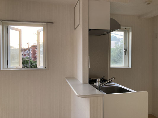 2口ガスコンロのキッチンですが、2つ窓があるっていうのがGoodなPoint
