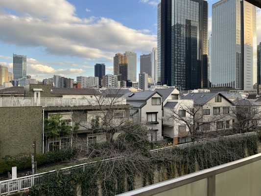 以前、なかなか、おナイスなお部屋が、この近くで募集していたんですよ。などと思えば、到着。右の、自販機のある建物が募集のそれですが。あのビル群、西新宿のそれですよね?