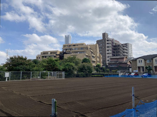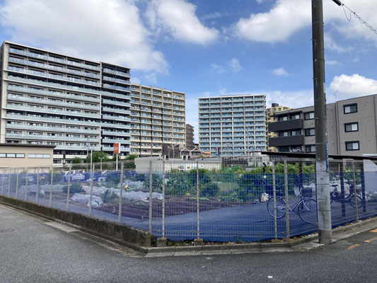 それで、畑の向こうに建つ、薄いブラウンの建物が今回の