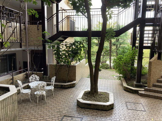シンボルツリーを中心に、建物が
