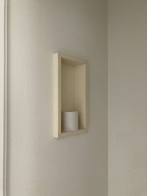 玄関脇の5.7帖。室外機置き場と空配管を通す穴もないということで。空調設置については設計士さんと相談してみて下さい