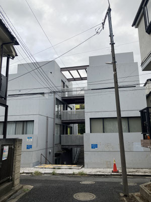 住宅街の中に、なかなかヴォリューミーな建物。ドンと