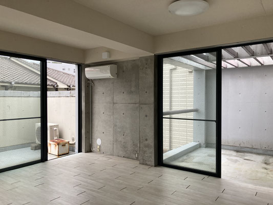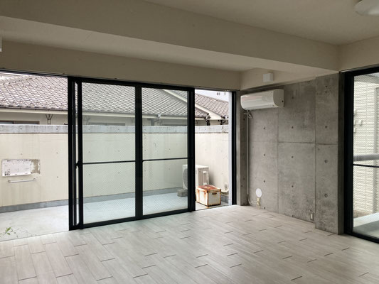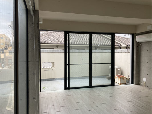 大変シンプルなワンルーム。しかし、なんでしょう。窓が過ぎる。3面窓に囲まれております。あらあら