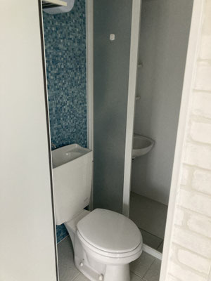 お手洗いの先に、浴槽はなくシャワールーム。お手洗いは多少手狭かもわかりません