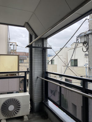 屋根のあるバルコニーは奥行きがあって。道で拾った枯葉でも眺めながら。ぼんやりと椅子にもたれるんでしょうか。