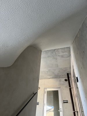 シャープなコンクリートに、動きのある天井。