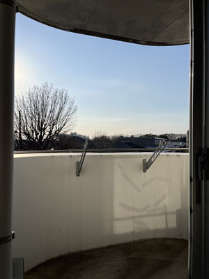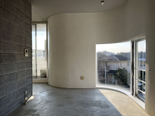 3階、のぼりきって振り返れば。ここ。すごく、良い。青森の美術館、想起しませんか。しませんか。玄関は、このような形で。シーが、スルーで。