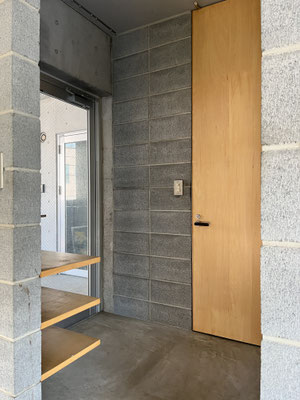 玄関を開けると、地続きにコンクリートの床。外から中へと、シームレスに。室内奥からは、光の気配。