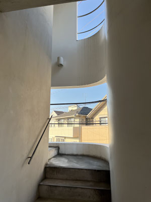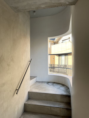 外観ばかり眺めていても、しようがありませんので。建物にはエレベーターありません。階段で。やだ。この階段、すごく、良い。