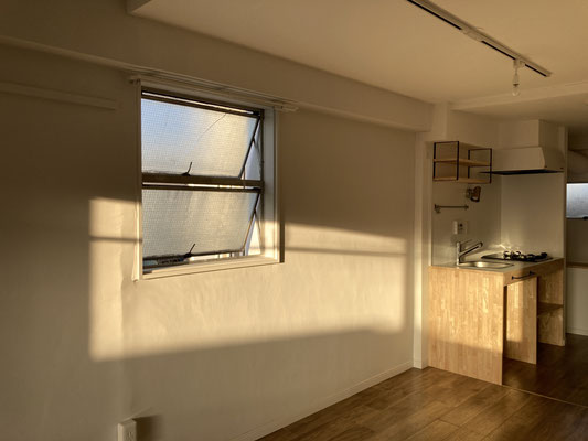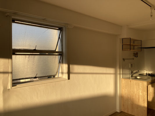 シンプルワンルームということですが。なんでしょうね。どこか落ち着くのは、金色の光がなせる技なのでしょうか。