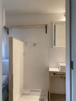 それで、洗面に入って思ったのは。トイレットペーパーかけるところ、ブラック。好き。あとはあれですね。洗面ボウルがスクエアでグッドですね、ということでしょうか。