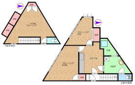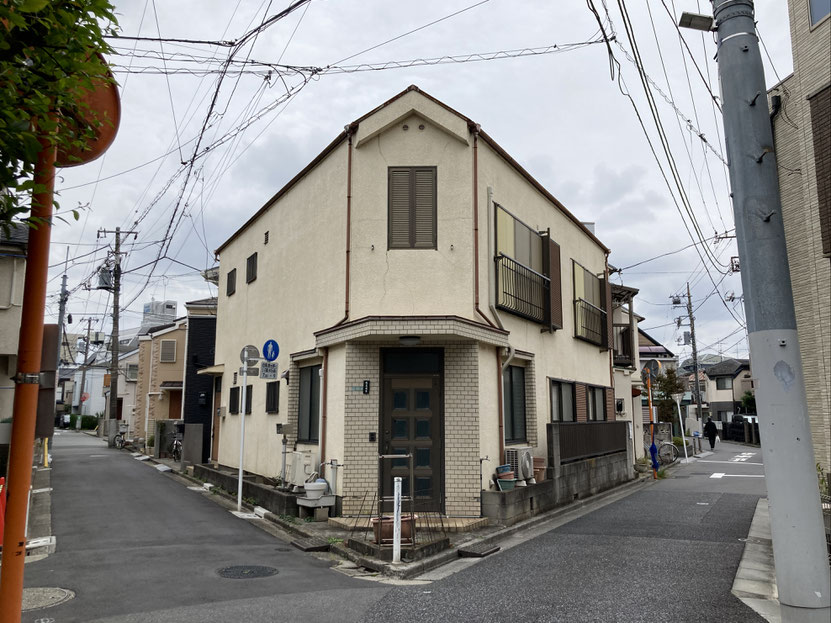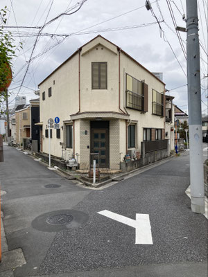 叉路の角に建つ物件。三角形の敷地に建つ、三角の建物(だから、何?)