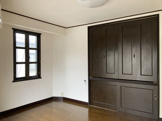6帖の居室は、窓に、収納建具にと。どこか洋館風味漂い。写真に残してないのですが、腰高の印象的な窓があるじゃないですか(ですか?) この窓、開ける時、結構気持ちが良いやつです。