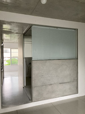 そういえば。中央のガラス窓にかかってたブラインドを引き上げると?なるほど。大変に見通しがよろしゅうございましゅう。ということで、入り口側の6帖のお部屋も、ブラインドあげて奥まで視線が抜けると。より室内が広く感じられるようで