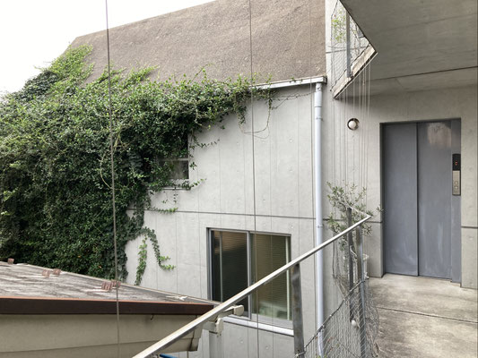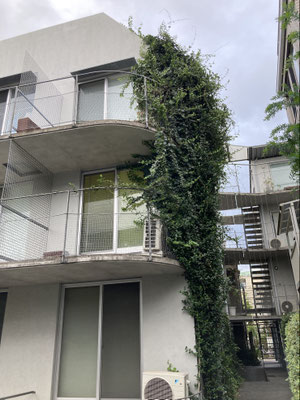 緑の気配がしたから。私は建物裏手に回って。つたっておりますなあ