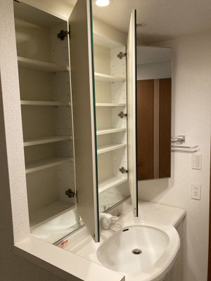水回りは私をちょっとドキドキさせてくれましたね。洗面鏡ですが、パタパタっと開けられます。パタパタって意味不明ですか?そうですか。ダウンライトが結構、良い味出してました