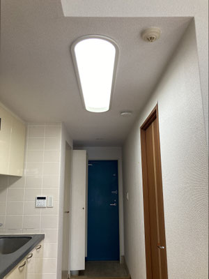 ワンルーム間取りで、廊下に壁付けのキッチン