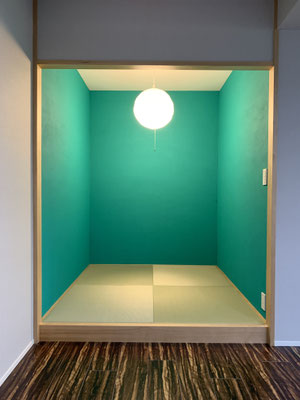 もうひとつの特徴が、この小さな畳スペース。現代的な色味の小空間。ここで正座しながら庭園を眺めたり、温かいお茶を頂くなどを。畳で寝るのが好きな方には寝室としての利用もありかも知れません。