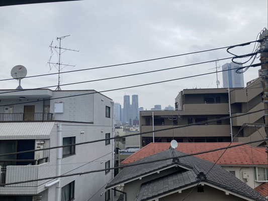 マーレー? なるほど、別にそんなに眺めがスコーンでもないのですが。新宿のビルが見えるということで。夜になれば、赤いランプがポツポツと